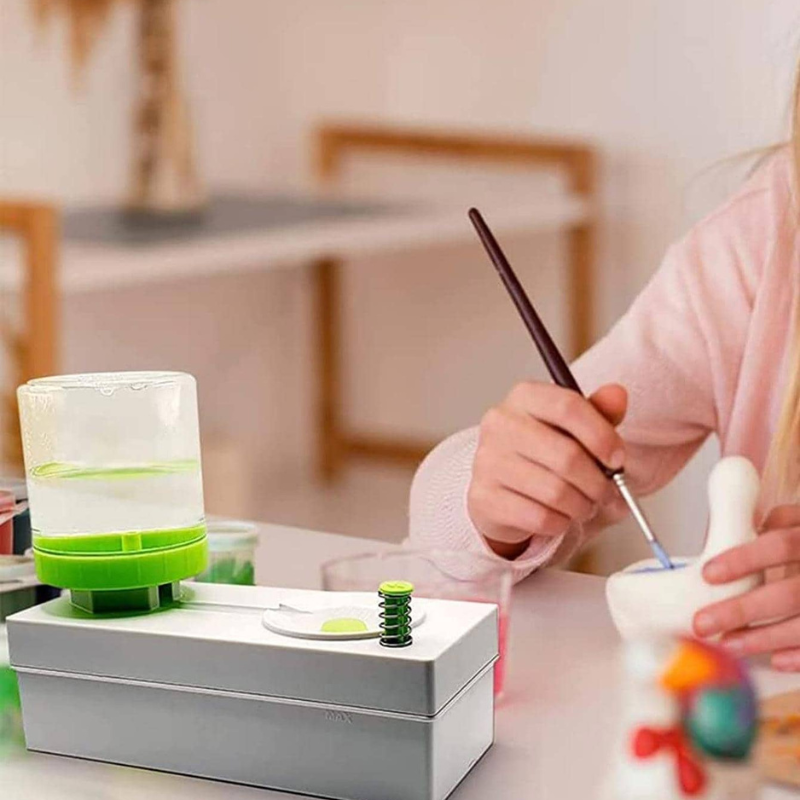 - システムが水を循環させ、筆の汚れをすばやく洗浄します。常に清潔な水をお使いいただけます。