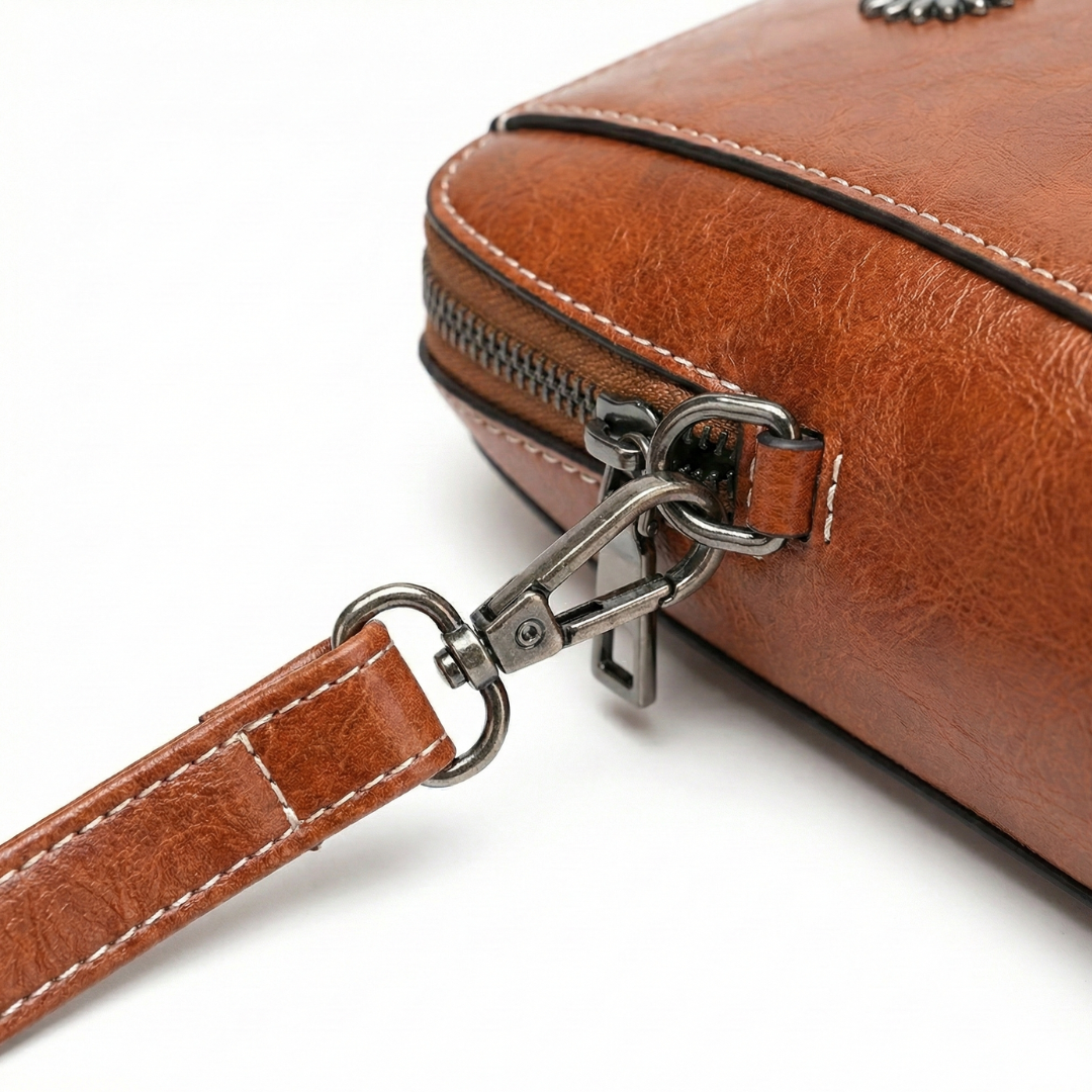 長さ調整可能なクロスボディストラップで貴重品も安心。両手が空くので、移動や作業も快適です。