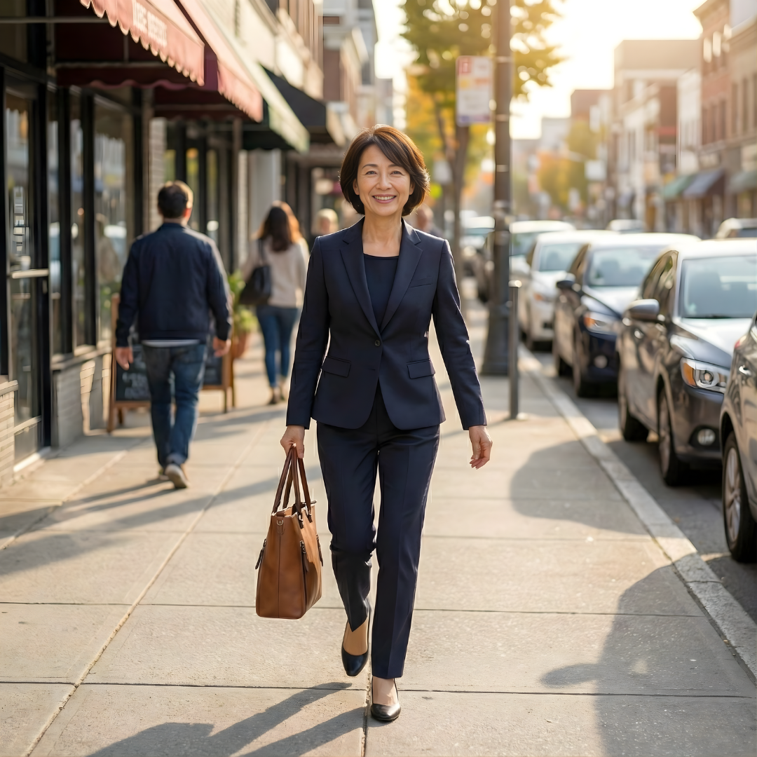 頑張りすぎない洗練されたレトロ感と現代的なセンスが自然に調和し、大人の魅力をさりげなく引き立てます。
