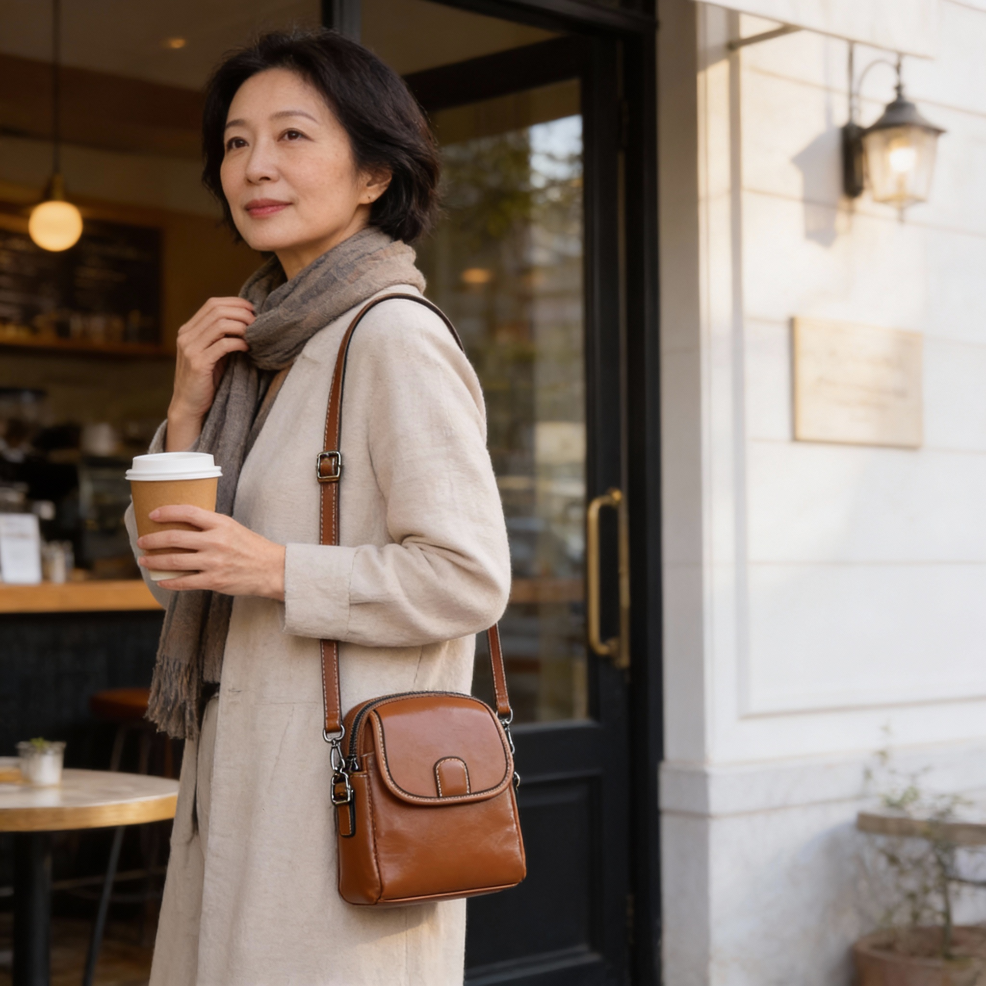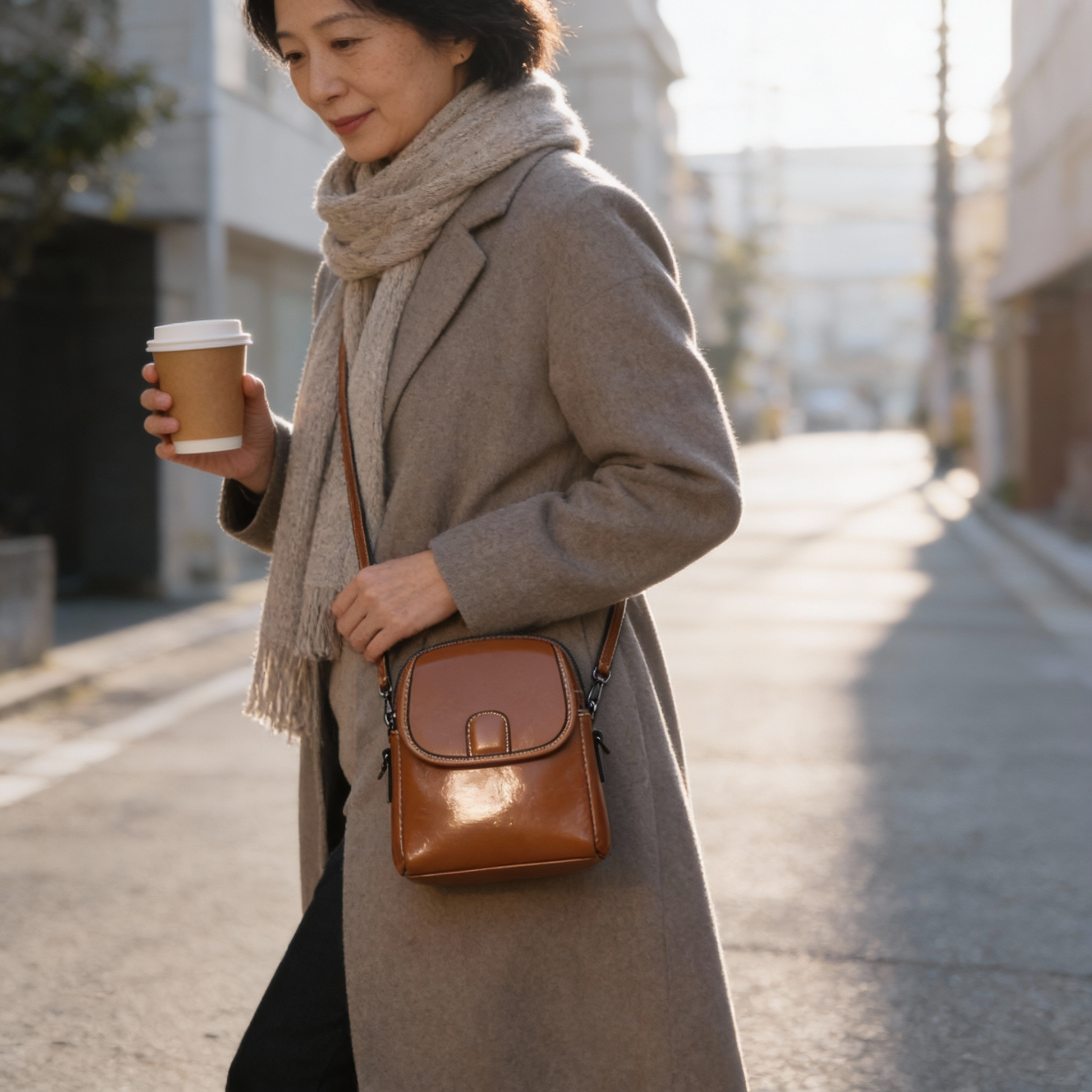 上品さを静かに添えるショルダーバッグは、大人のこだわりをさりげなく表現してくれます。