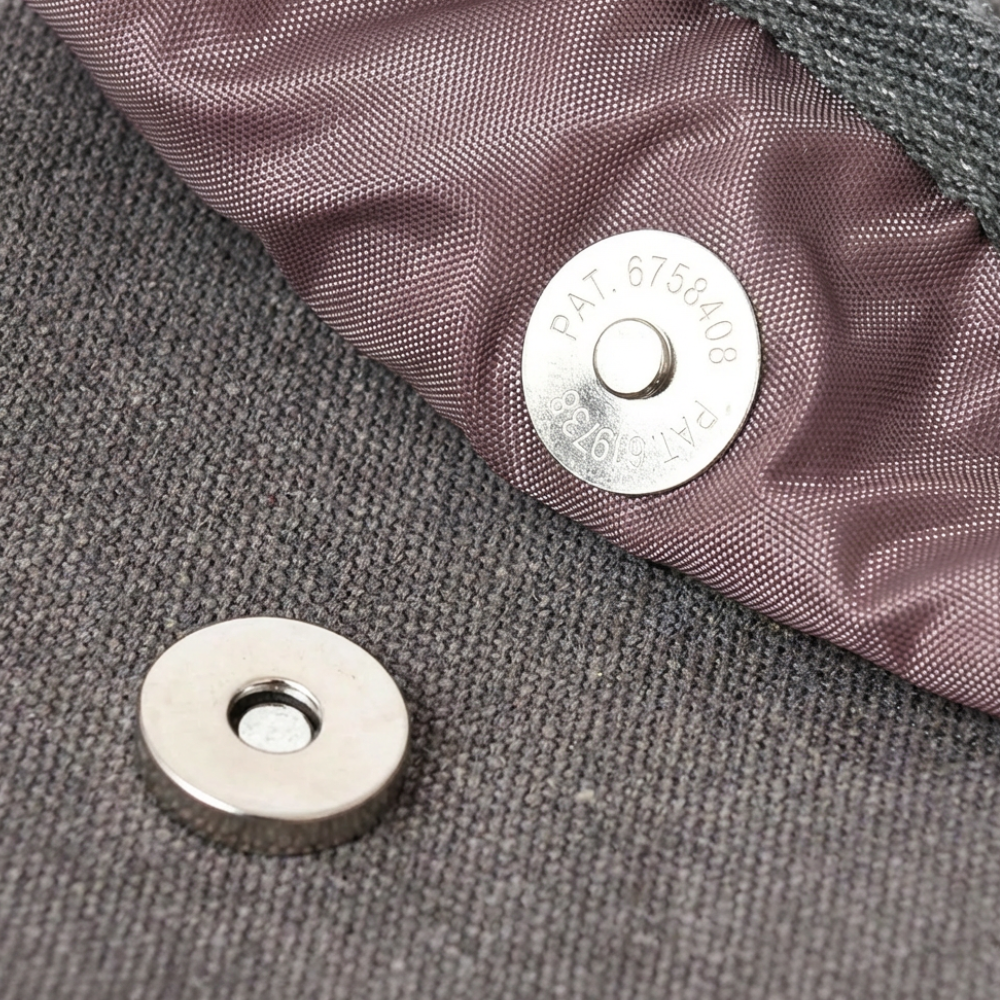 前面カーブポケットにはスナップボタンが付いておりますので、小物も安心して収納していただけます。