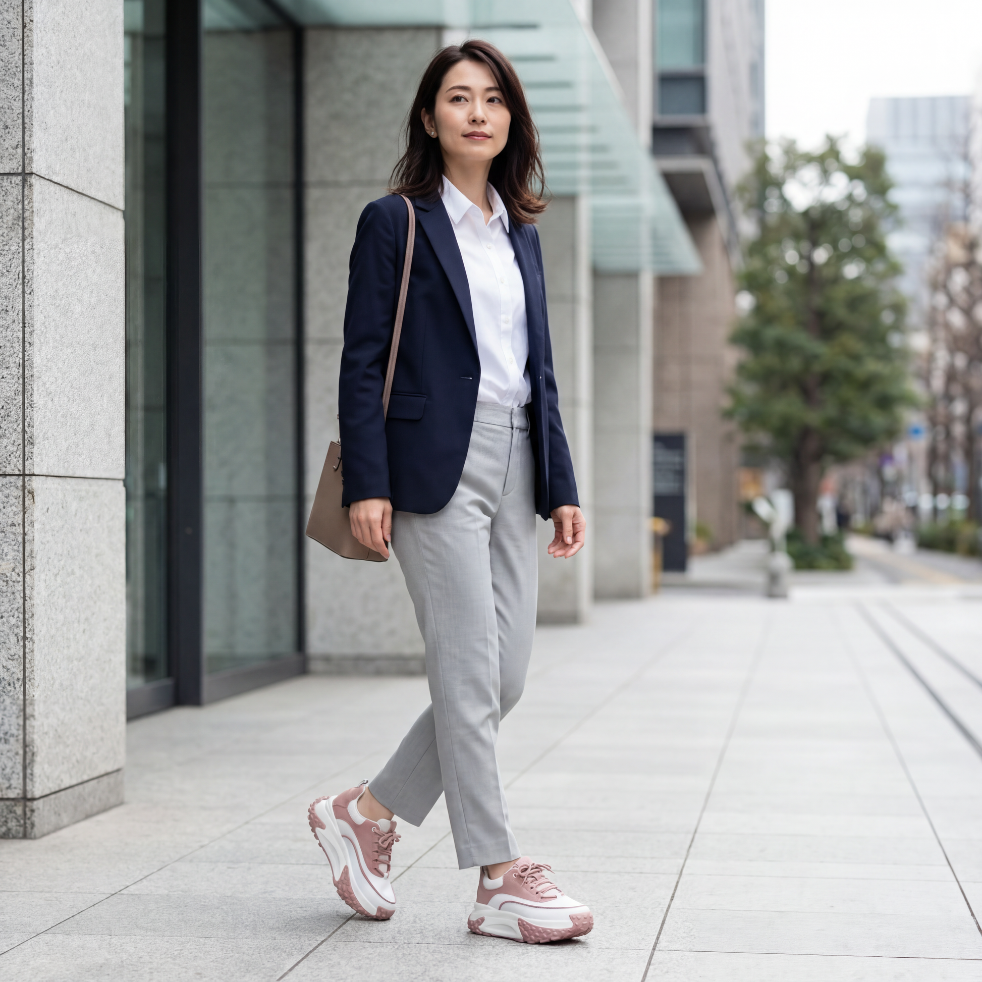 CLOUDIVA™スニーカーは、さりげなく脚を長く見せ、美しい姿勢へと導きます。まるでサロン帰りのような軽やかな自信と凛とした佇まいをご実感いただけます。