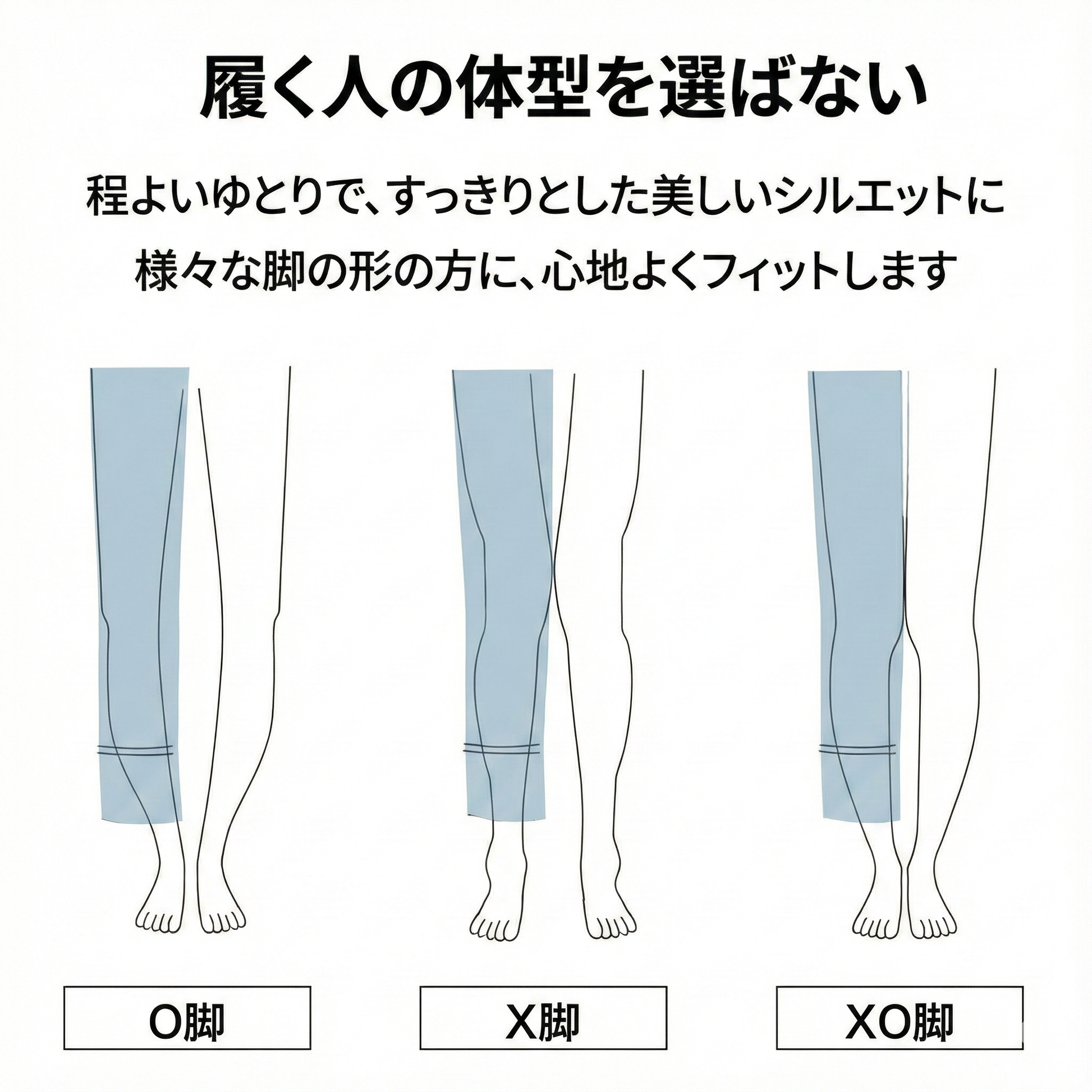 ハイウエストがやさしくお腹まわりを包み込み、ニットやコートの下でもきれいなラインを保ちます。