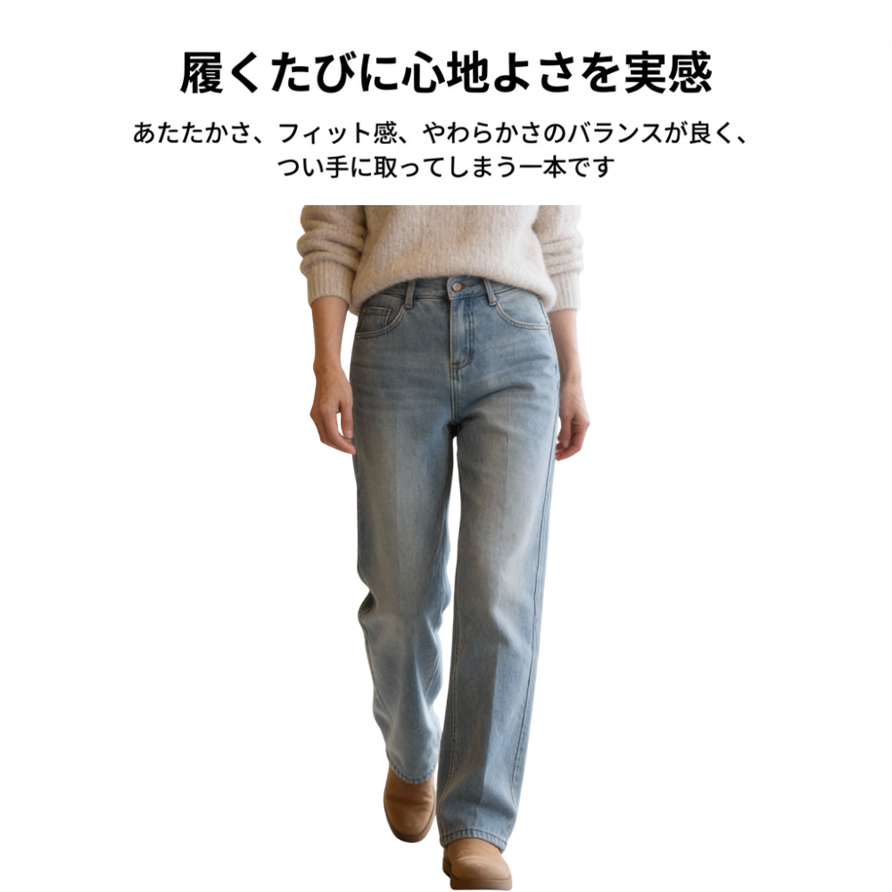 お気に入りのデニムをさっとはいて、足元の冷えを気にせず、一日を心地よく始められる幸せ。