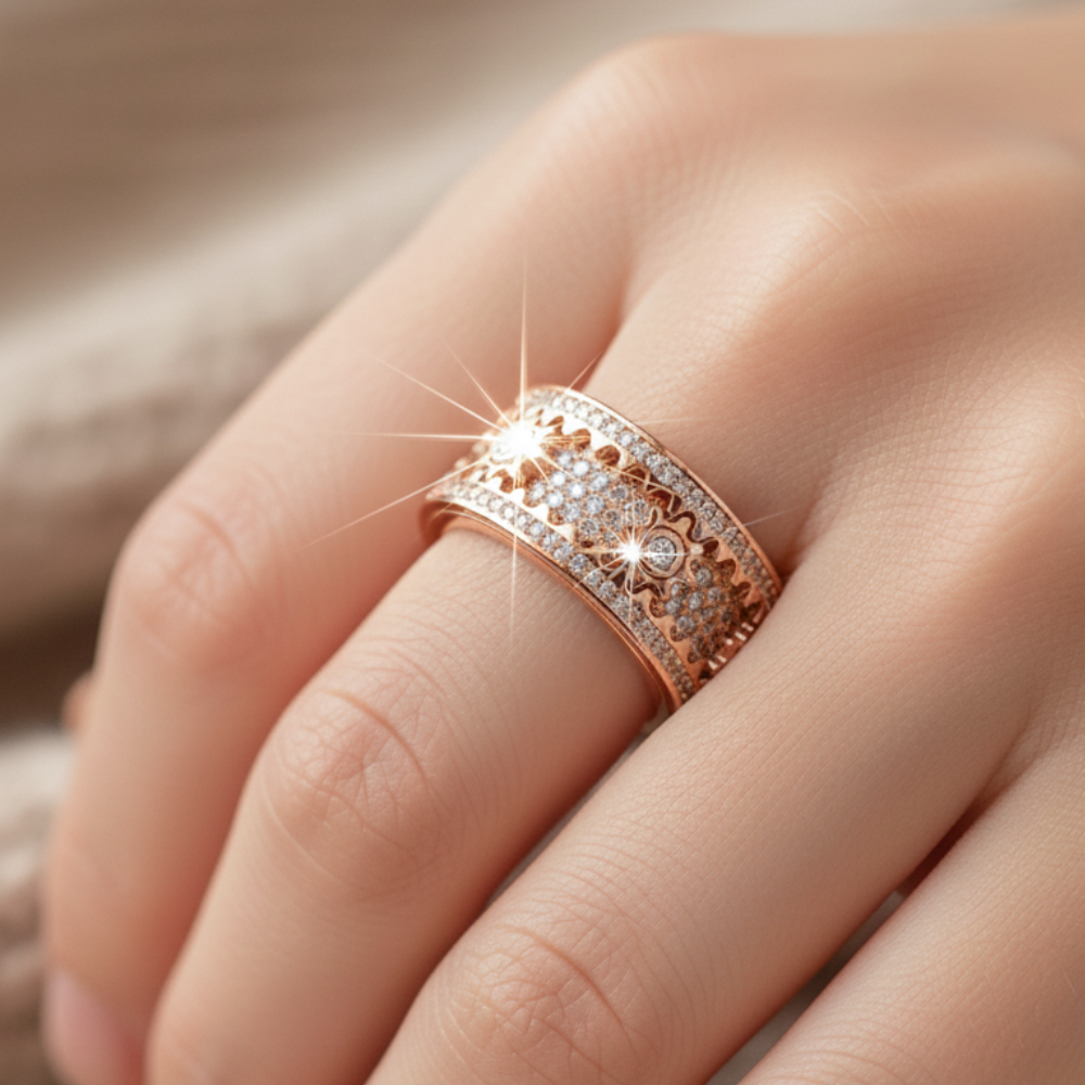 歯車のモチーフが指先で静かに回転するたび、心が落ち着き、自然と前向きな気持ちが生まれます。