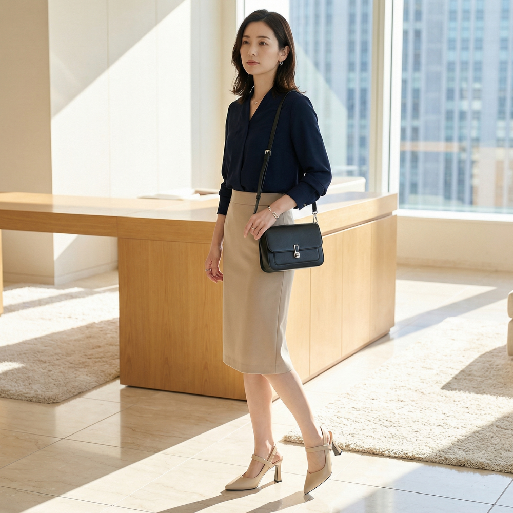 足を入れた瞬間から、丁寧に仕立てられたヒールが姿勢を美しく整え、すらりとした脚を演出。自然と自信を持って歩ける自分に出会えます。