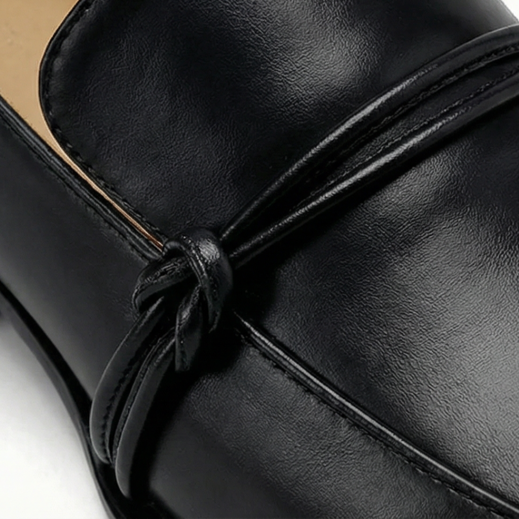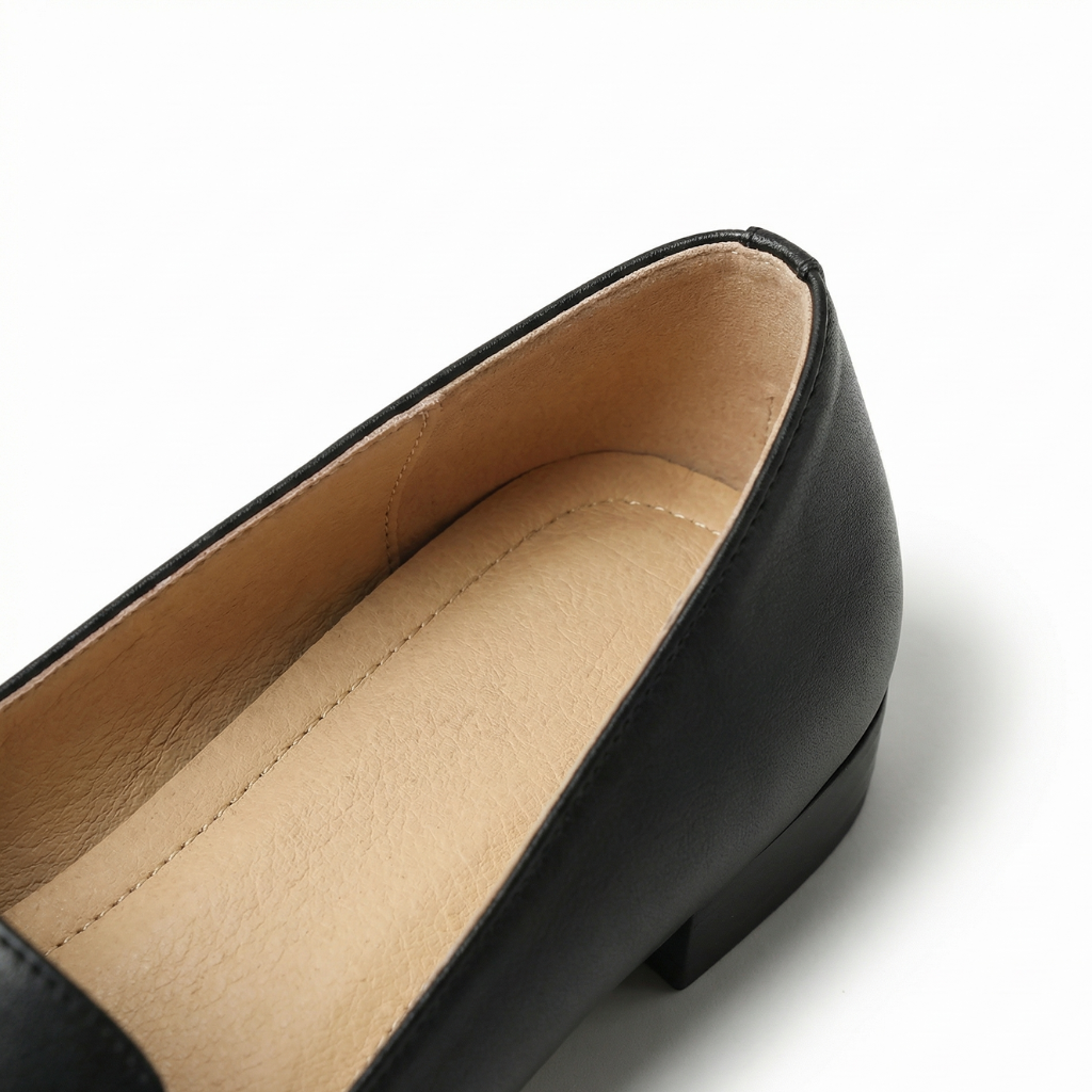洗練されたスクエアトゥで大人な雰囲気を演出し、柔らかなPUレザーがやさしく足を包み込みます。