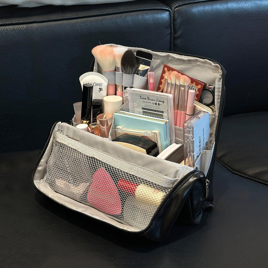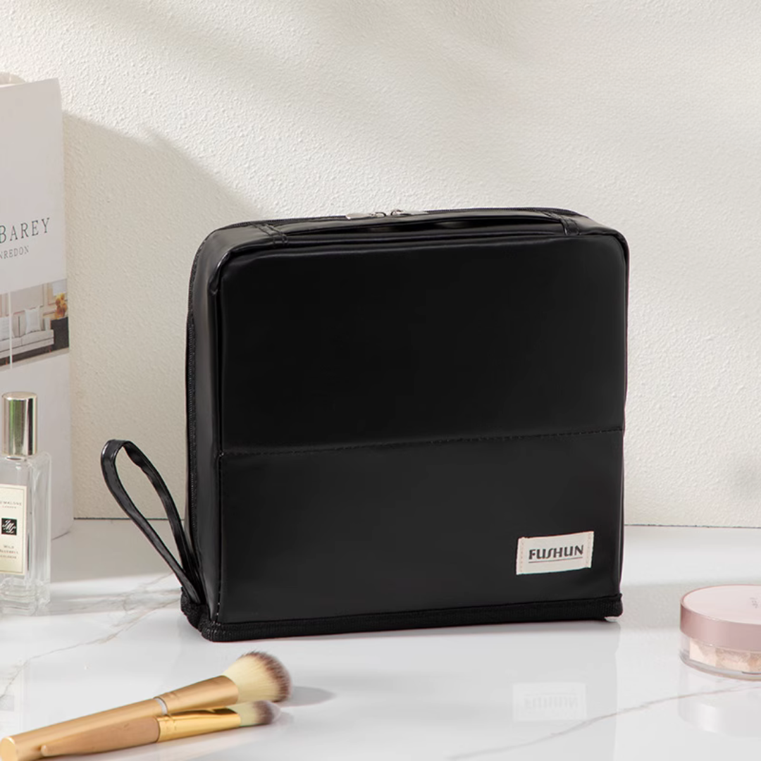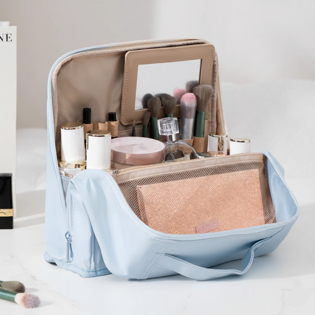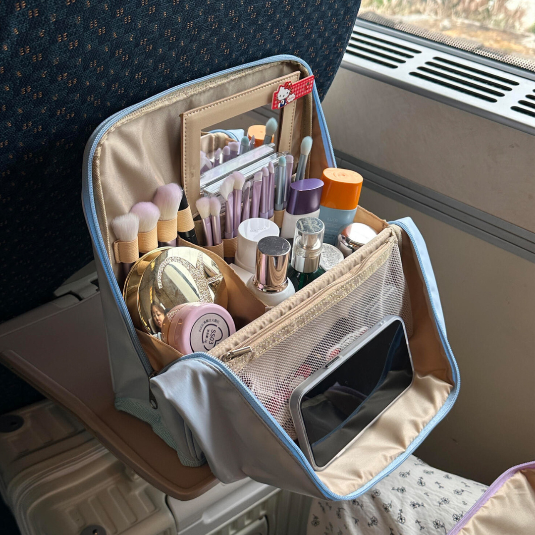 補強された側面とクッション性のある裏地で、移動中の衝撃や液漏れも安心。空港や旅行中も大切なコスメを守ります。