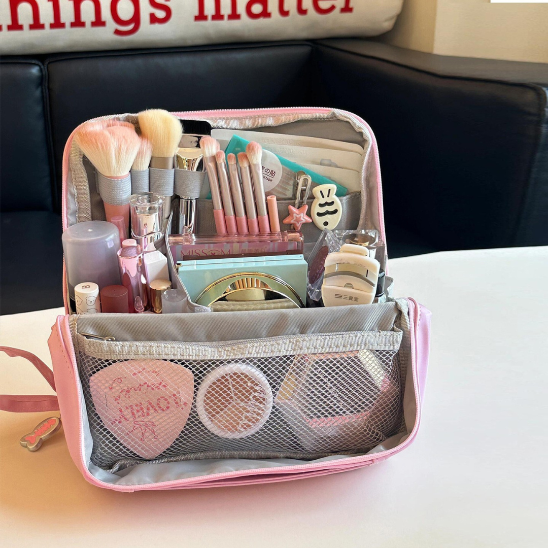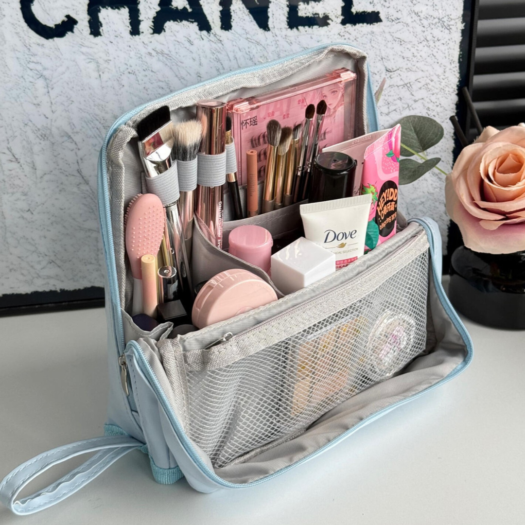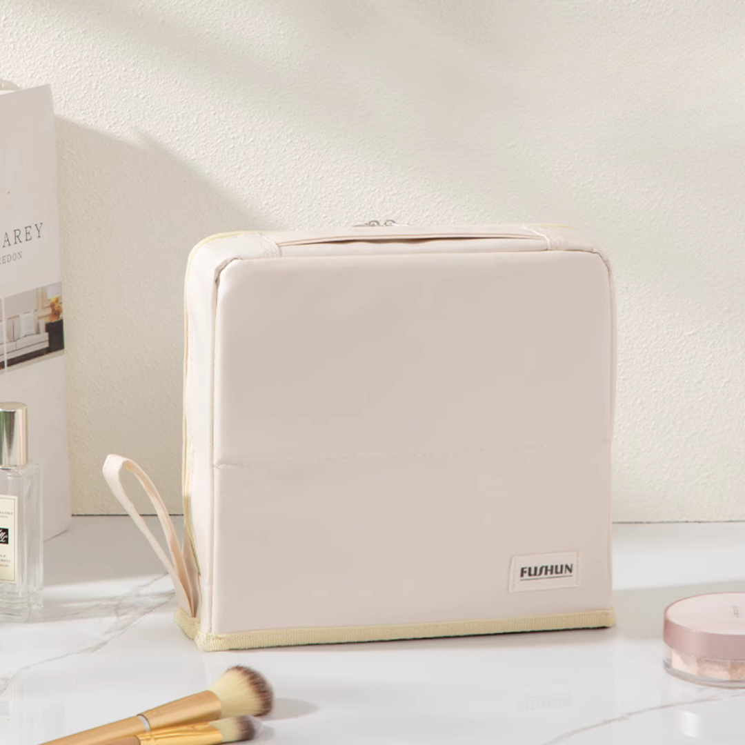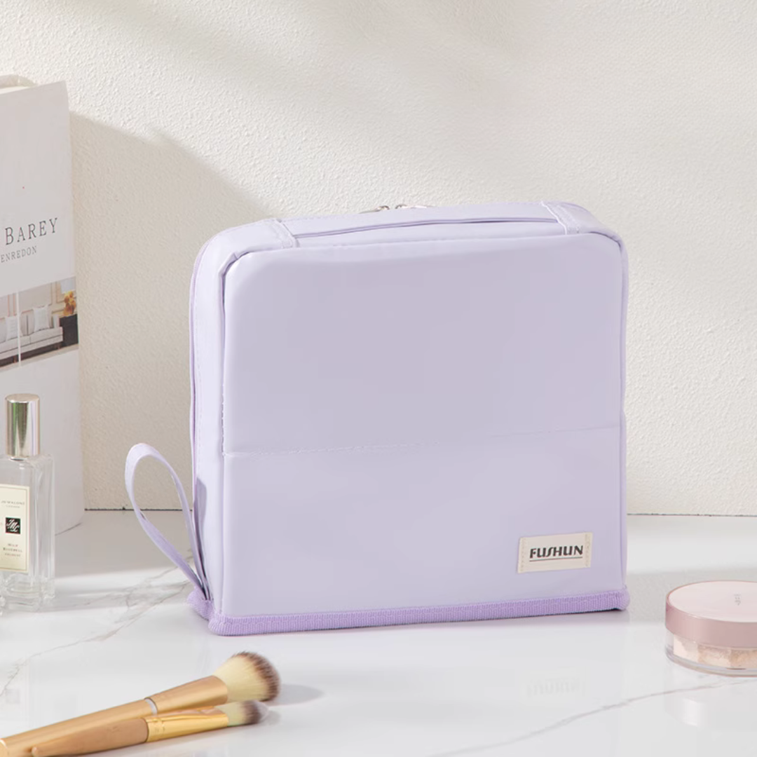 補強された側面とクッション性のある裏地で、移動中の衝撃や液漏れも安心。空港や旅行中も大切なコスメを守ります。