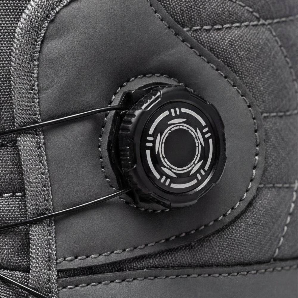 ダイヤルを回すだけで、靴ひもを結ぶ手間なし。手袋をしたままでも片手で操作できます。