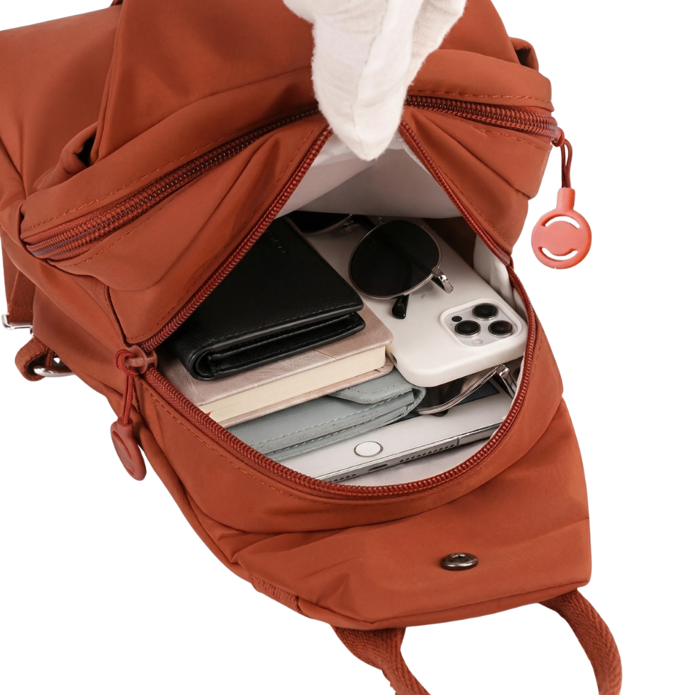 ショルダーベルトの調節も簡単です。斜め掛け・肩掛けへの切り替えも数秒で完了します。
