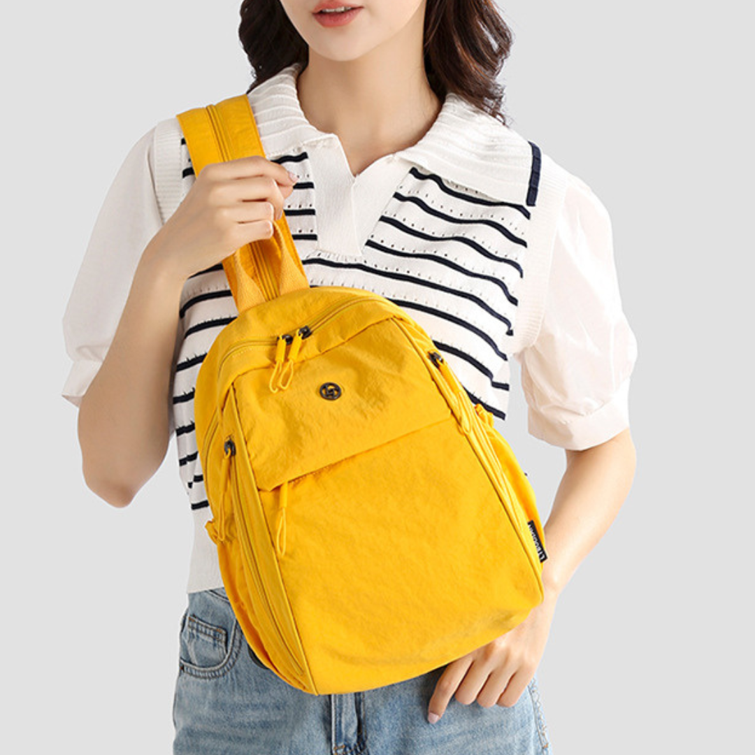 MODLYN™ バックパックは、驚くほど軽やかでしなやかな使い心地。どんな装いにも自然となじみ、毎日のお出かけをさりげなく彩ります。上質なナイロン素材は手ざわりも滑らかで、突然の雨にも強く、通勤や旅行先でも上品な印象を演出します。