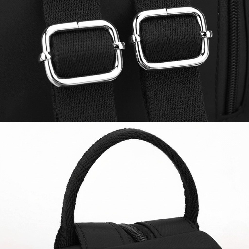 ショルダーベルトの調節も簡単です。斜め掛け・肩掛けへの切り替えも数秒で完了します。