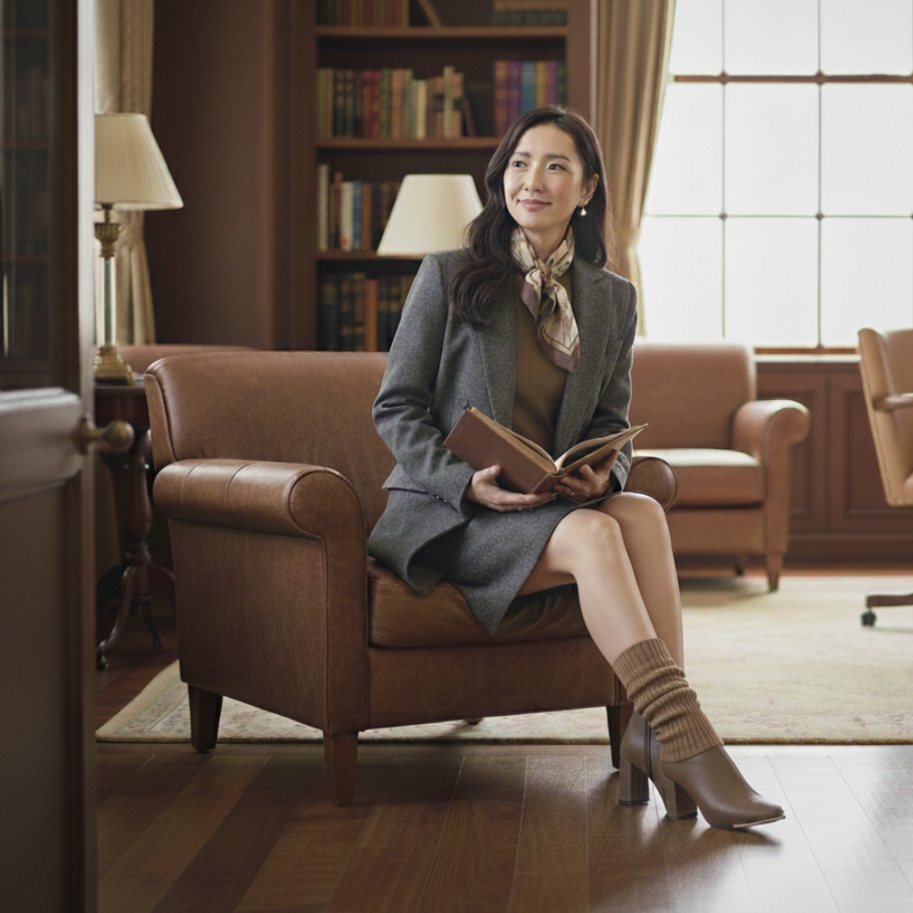 さらに、さりげないチャンキーヒールが姿勢まで美しく整え、一歩一歩に自信をプラス。