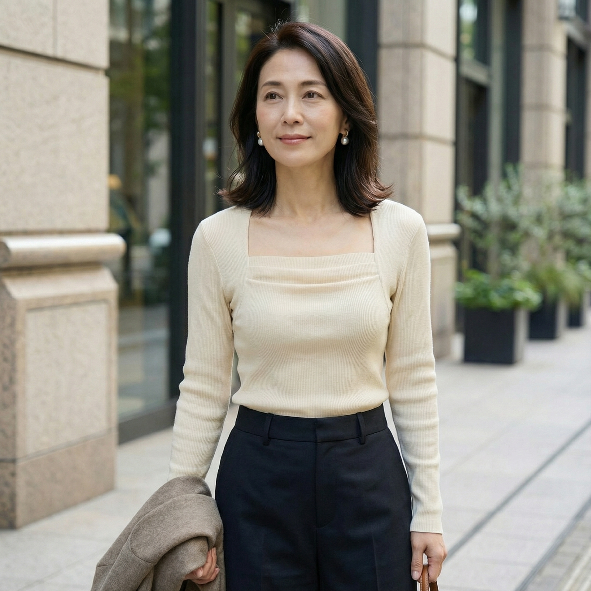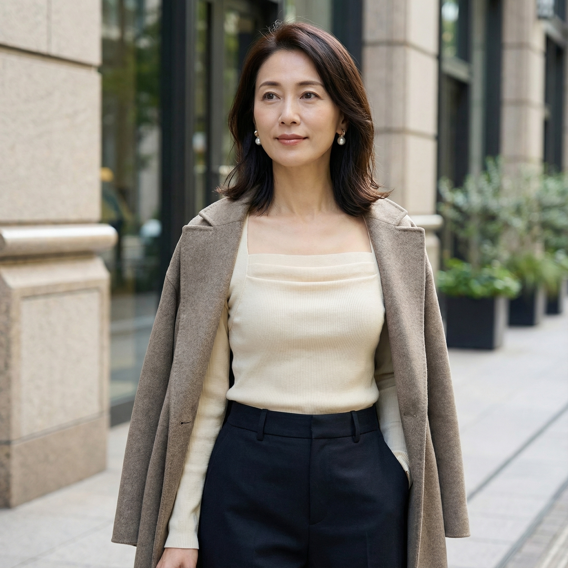 澄んだ朝、きちんとした装いでお出かけしたいのに、重ね着でシルエットが崩れがち……。