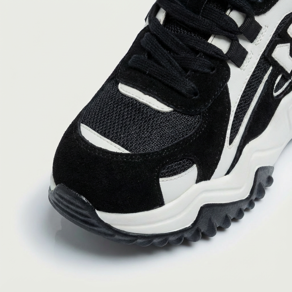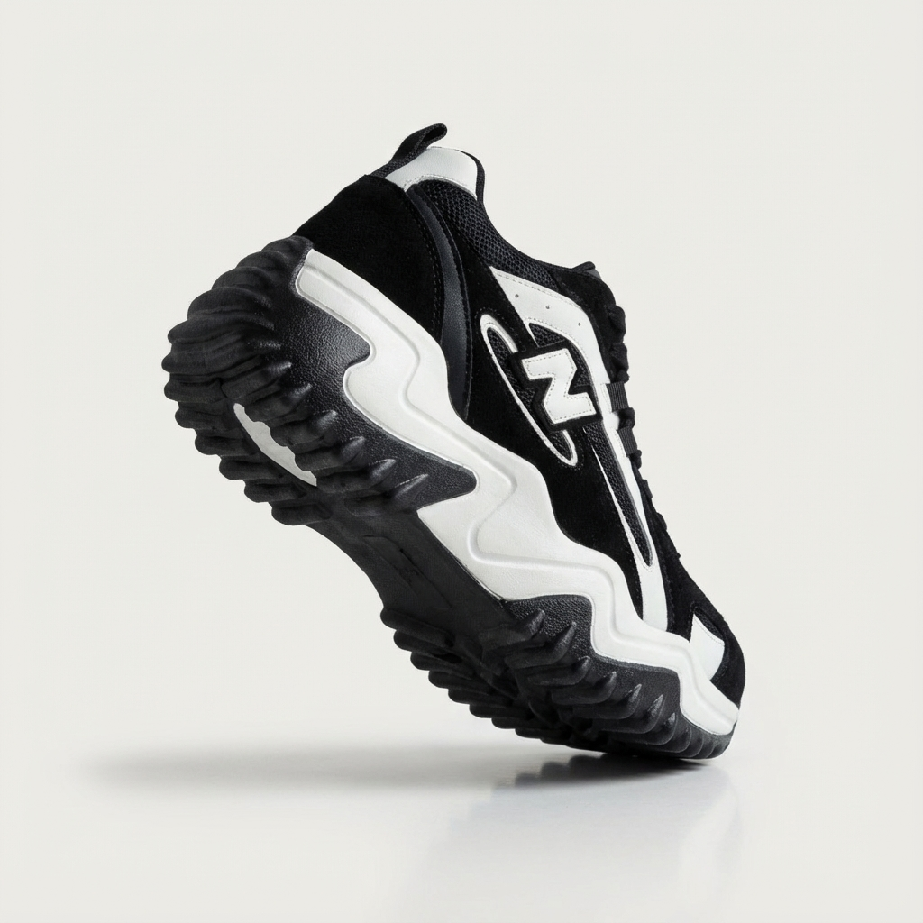 このスニーカーは、自然なつま先の動きを実現する広めのトゥボックスを備えた標準的なアスレチックフィットで、ソールデザインに7cmの隠しリフトが組み込まれており、自然な見た目を保ちます。