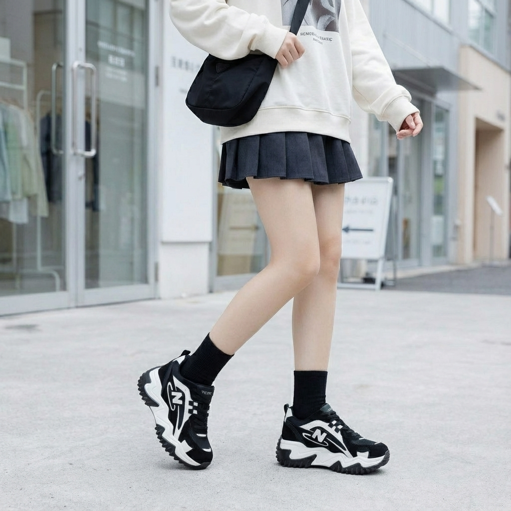 隠された身長アップシステムがソールにシームレスに組み込まれており、クラシックなPUレザーダッドスニーカーのように見えながら、瞬時に自信と存在感を与えます。