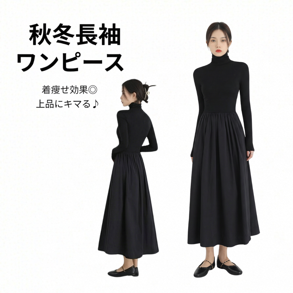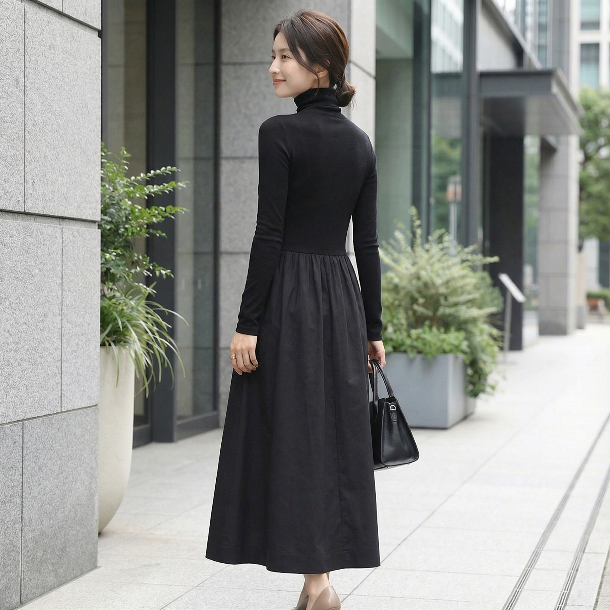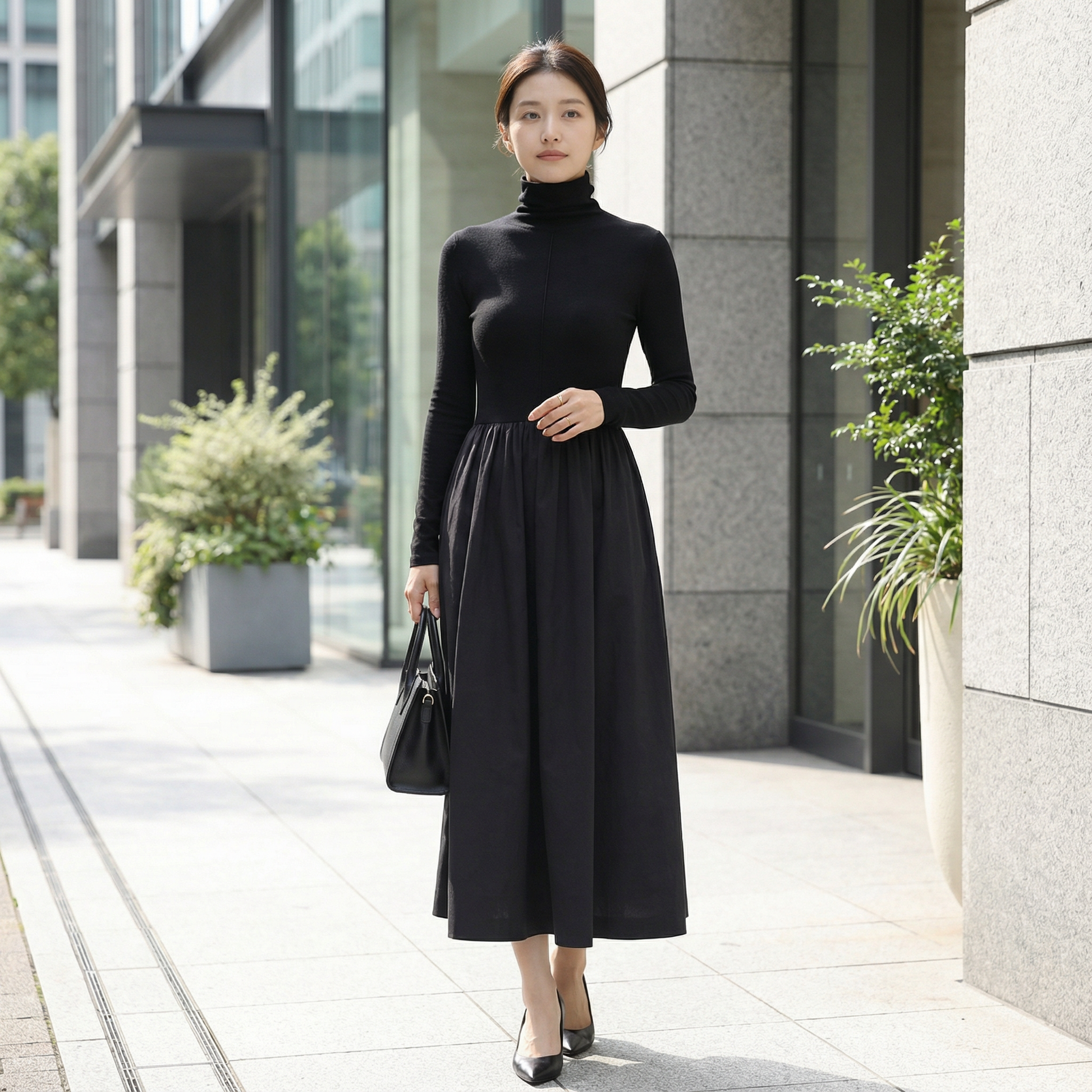 ニットとスカートの洗練されたドッキングデザインが美しいシルエットを際立たせ、動きに合わせて優雅に揺れるスカートが、より一層エレガントな印象を演出します。