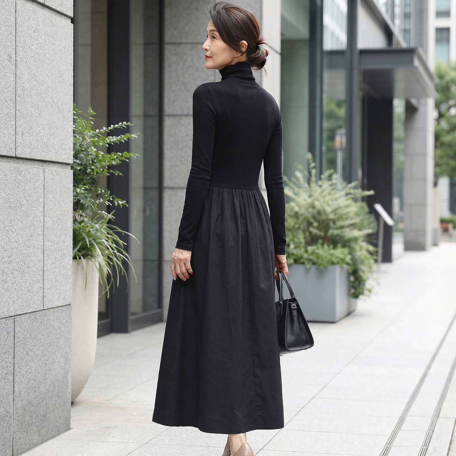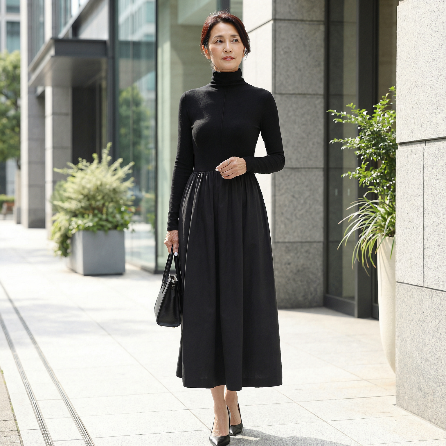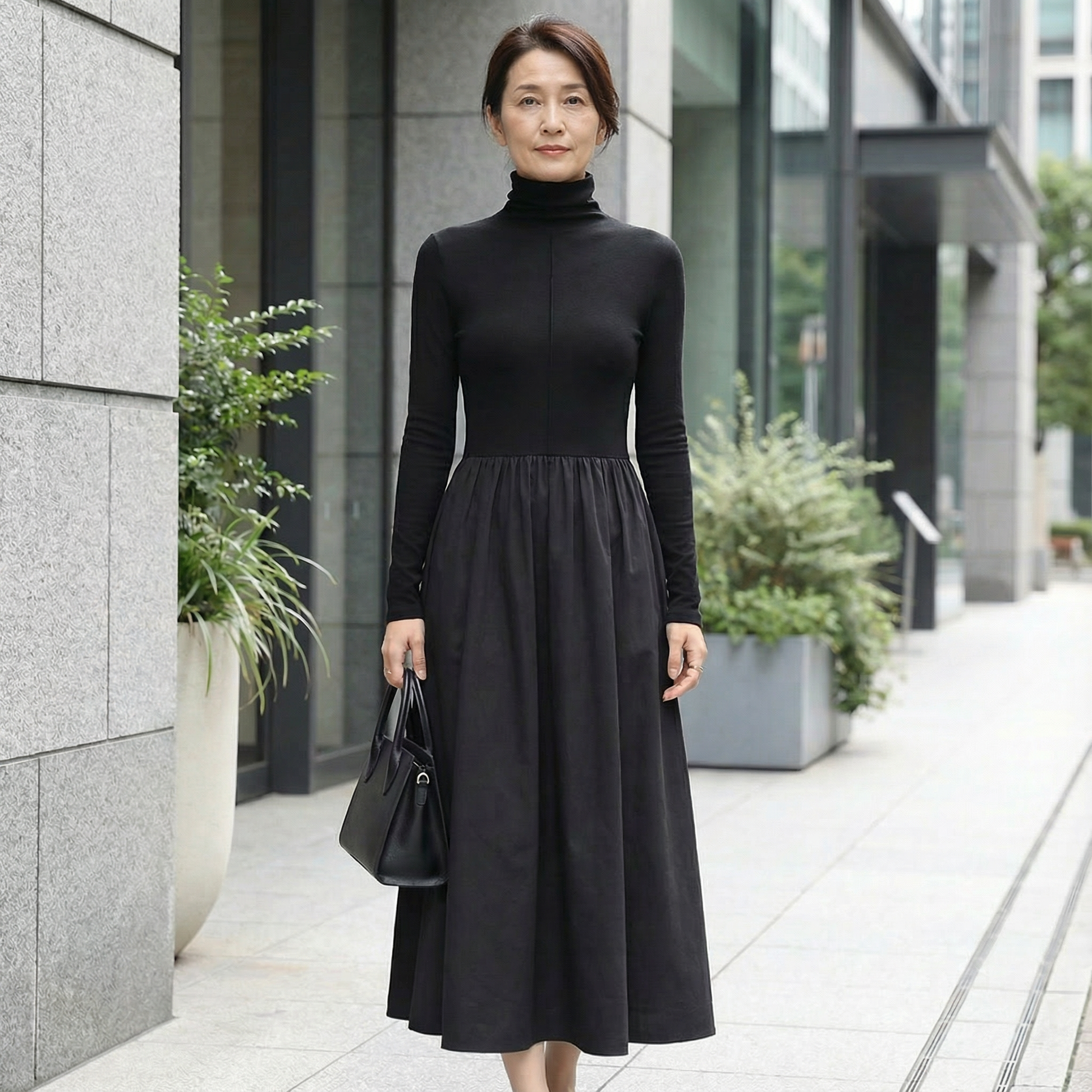 ✓ オフィスから週末ブランチまで、アクセサリー次第で印象が変わる5通りの着こなしが楽しめる万能デザイン。