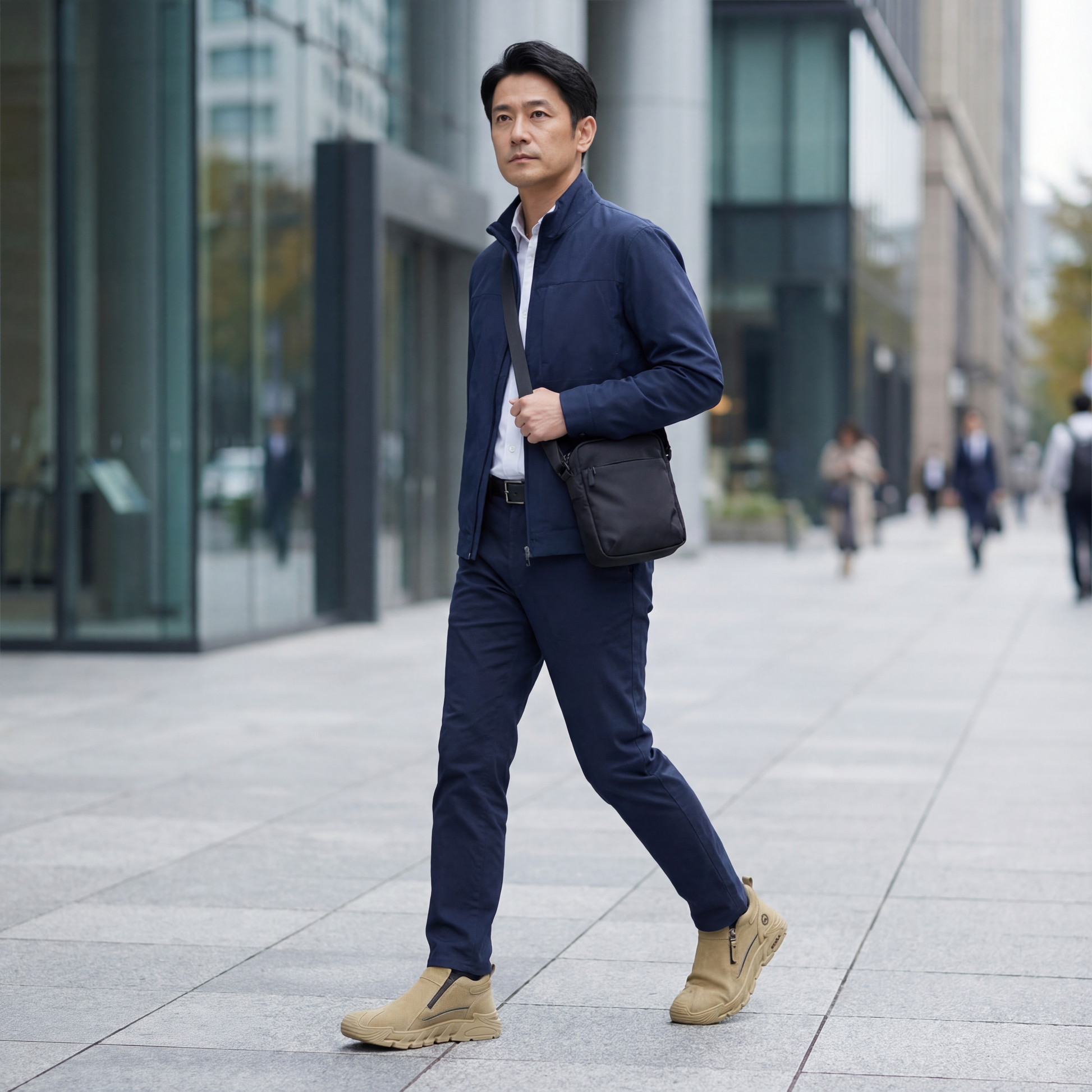 雨の朝でも想像してみてください。梅雨の軽い小雨のなか、日本の街を足取り軽く歩き出せる安心感。もう濡れた靴下で気分が下がることもありません。日中も蒸れにくく、不快感なく一日を過ごせます。