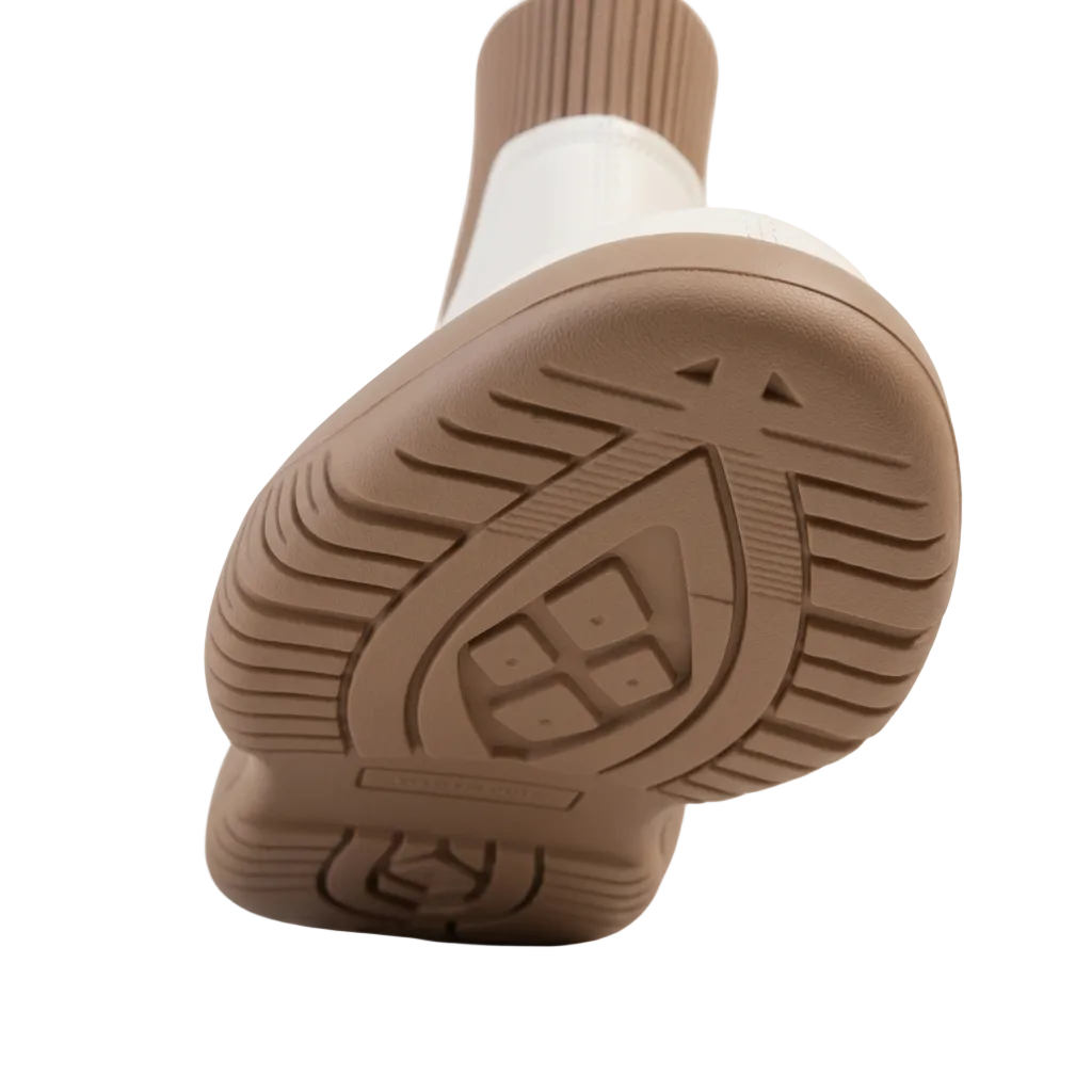 柔らかなリブニットと滑らかなPUアッパー、クッション性のあるゴムソールで構成されています。日常使いでも疲れにくく、スタイルを崩さずに履けます。