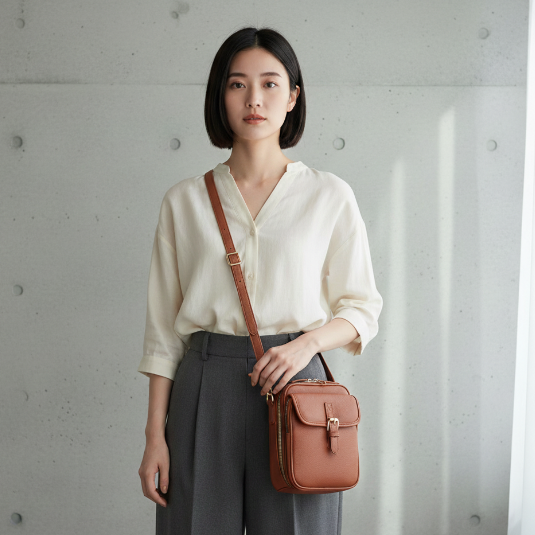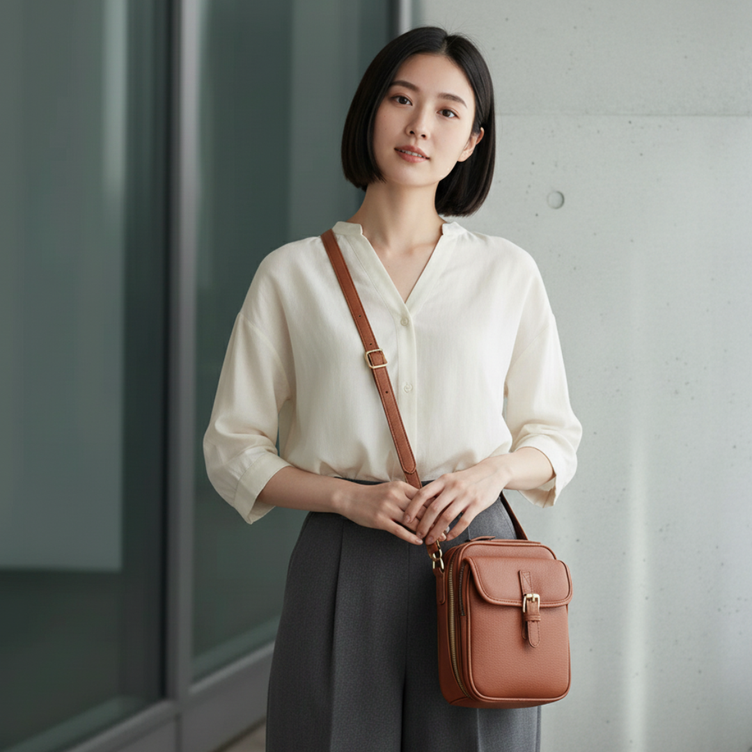 さりげなく隠れるファスナーで、スマートフォンやカード類、お財布も安全に保管。通勤やご旅行など、日々のさまざまな場面でも安心してご利用いただけます。